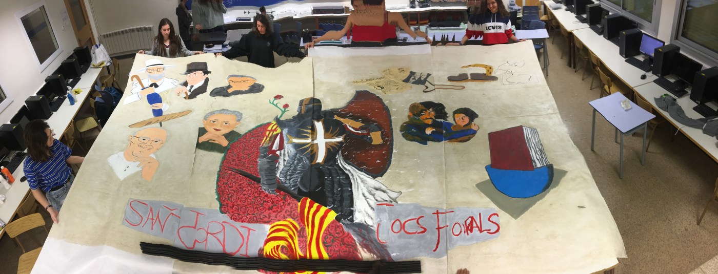 Para el 23 de abril, un alumno de segundo de bachillerato (Marc) había tenido la idea de hacer un mural para el dia de Sant Jordi, que contenía la imagen de personajes, autores y símbolos representativos de Cataluña. En el centro del mural se encontraba un caballero que representaba al protagonista de la leyenda de Sant Jordi.